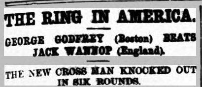Word arrived in England on March 29th 1889 that Wannop had been knocked out in the sixth round, the fight with Godfrey lasting a total of 22 minutes. Seemingly every regional paper in the country carried the news, delivered from Boston via cablegram.