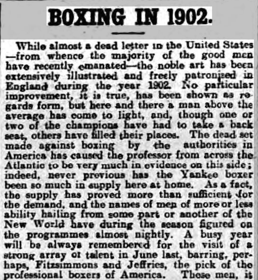 A number of articles published around 1913 remember the fight with Placke, or refer to Davenport in passing while reminiscing about other fighters.