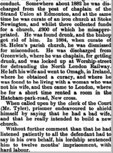 Although… In 1887 a Rev Patrick Frederick Duffy, alias the Rev Frederick Clarke was arrested for fraud, having numerous collecting books and printed circular appeals designed to raise money for churches in various parts of London which did not exist or that existed but were in use by other congregations and had nothing to do with Duffy.